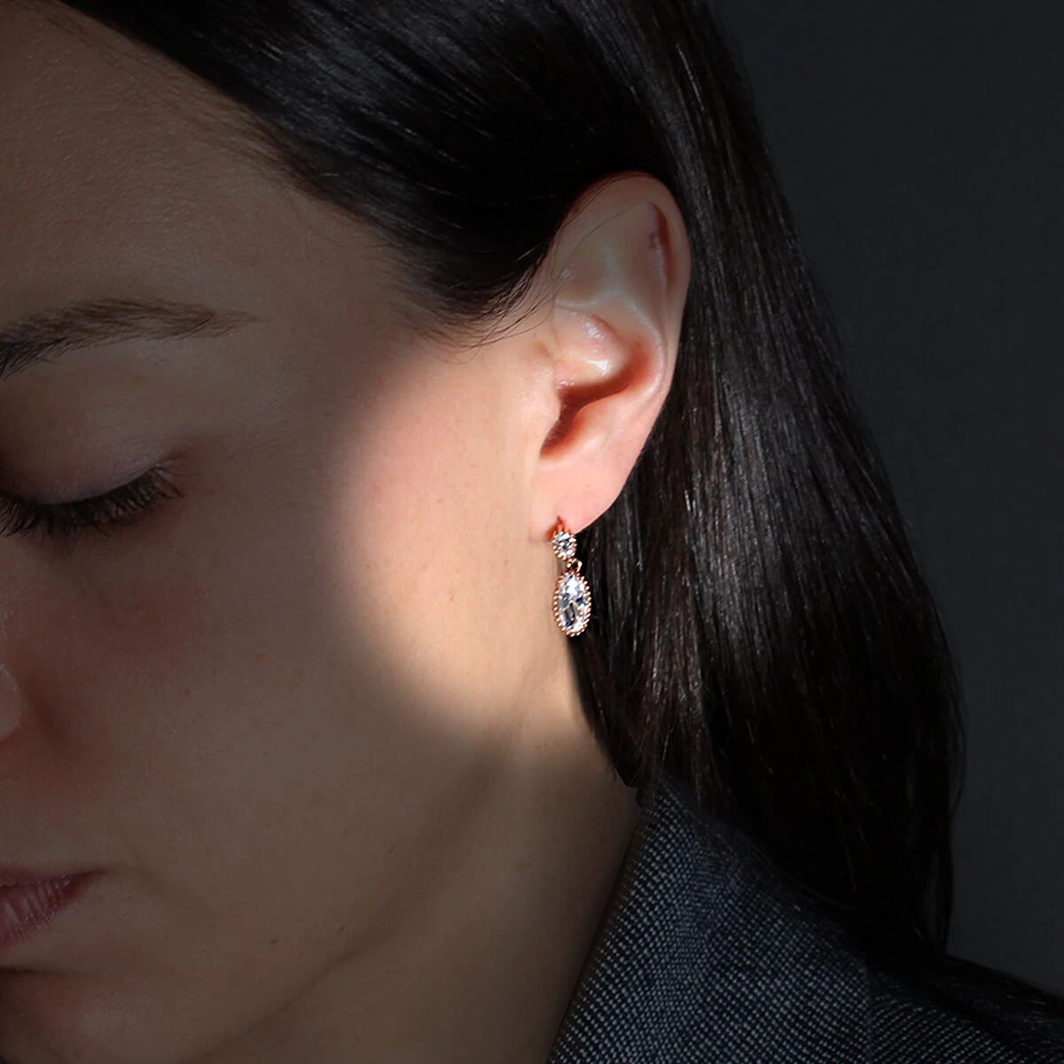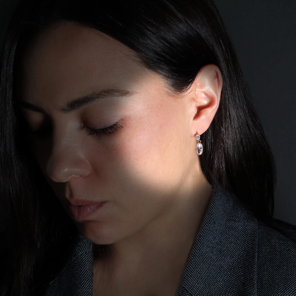 Los Aretes Amberes combinan elegancia atemporal con un diseño contemporáneo, destacándose por su estructura colgante en forma de gota. Cada pieza presenta un delicado cristal que captura la luz de manera sutil, enmarcado en un acabado de oro viejo que aporta carácter y sofisticación. Su diseño estilizado y el brillo suave del cristal convierten a estos aretes en el complemento perfecto para elevar cualquier atuendo, ya sea formal o casual.