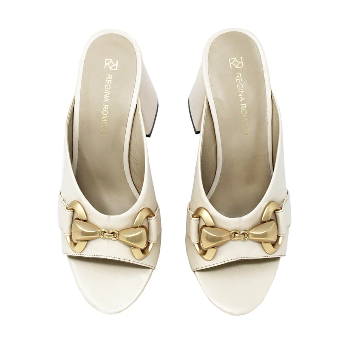 BASS 75 – Latte Regina Romero Zapato Sandalia Zapatilla Tacon Alto Para Dama En Piel