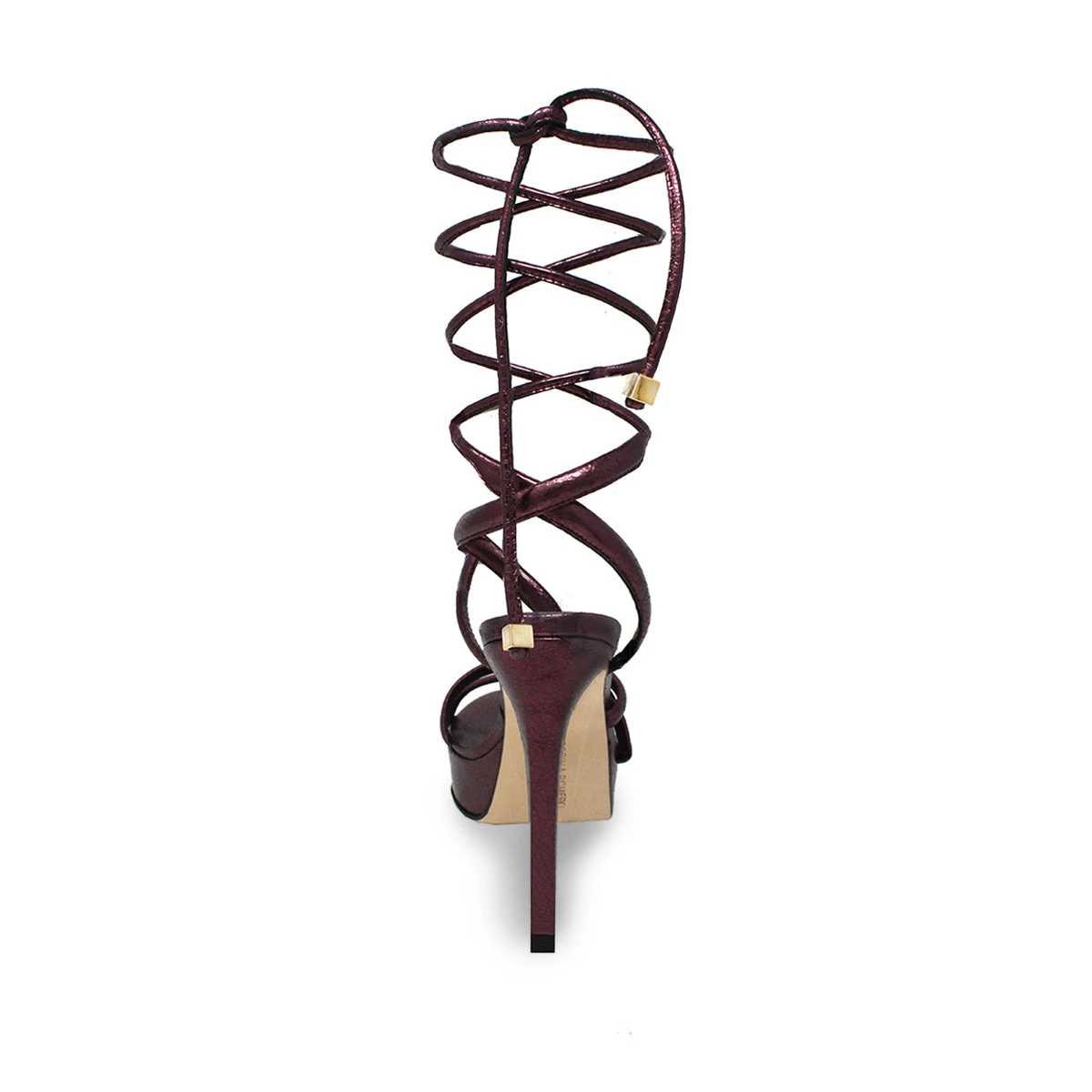 BRIGGITE 125 – Burgundy Regina Romero Zapato Sandalia Plataforma Tacon Alto Para Dama En Piel
