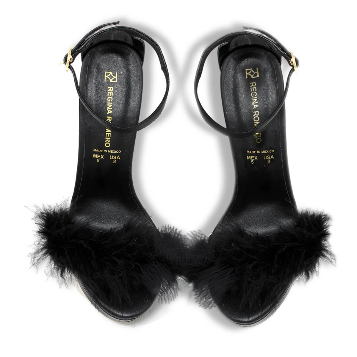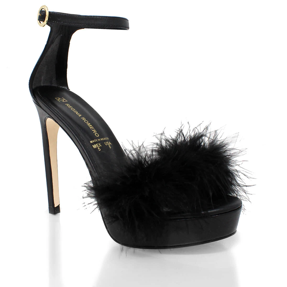 Descubre nuestra sandalia plataforma Carrie, una edición especial con la que podrás encontrar la fusión perfecta entre elegancia y modernidad. Con plumas en la parte frontal y elaborado 100% en piel, este modelo te brindará comodidad y estilo incomparables. Destaca en cualquier ocasión con Regina Romero y disfruta de cada paso con confianza.