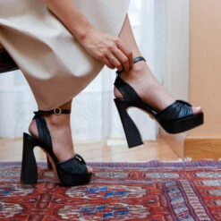 BERNADETTE 125 – Negro Regina Romero Zapato Sandalia Plataforma Tacon Alto Para Dama En Piel