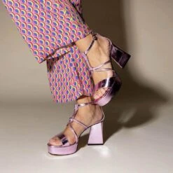 CALIPSO 95 – Rosa Metalico Regina Romero Zapato Sandalia Plataforma Tacon Alto Para Dama En Piel