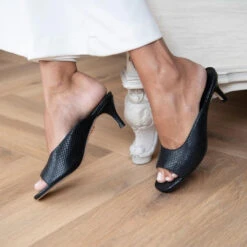 CLAUDINE 85 – Negro Regina Romero Zapato Sandalia Zapatilla Tacon Alto Para Dama En Piel