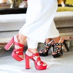 AGNI 135 – Rojo Y Naranja Regina Romero Zapato Sandalia Plataforma Tacon Alto Para Dama En Piel