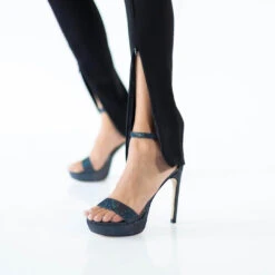 LAURA 125 – Glitter Negro Regina Romero Zapato Sandalia Plataforma Tacon Alto Para Dama En Piel