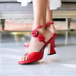 GEORGIA 50 – Rojo Y Naranja Regina Romero Zapato Sandalia Zapatilla Tacon Bajo Para Dama En Piel