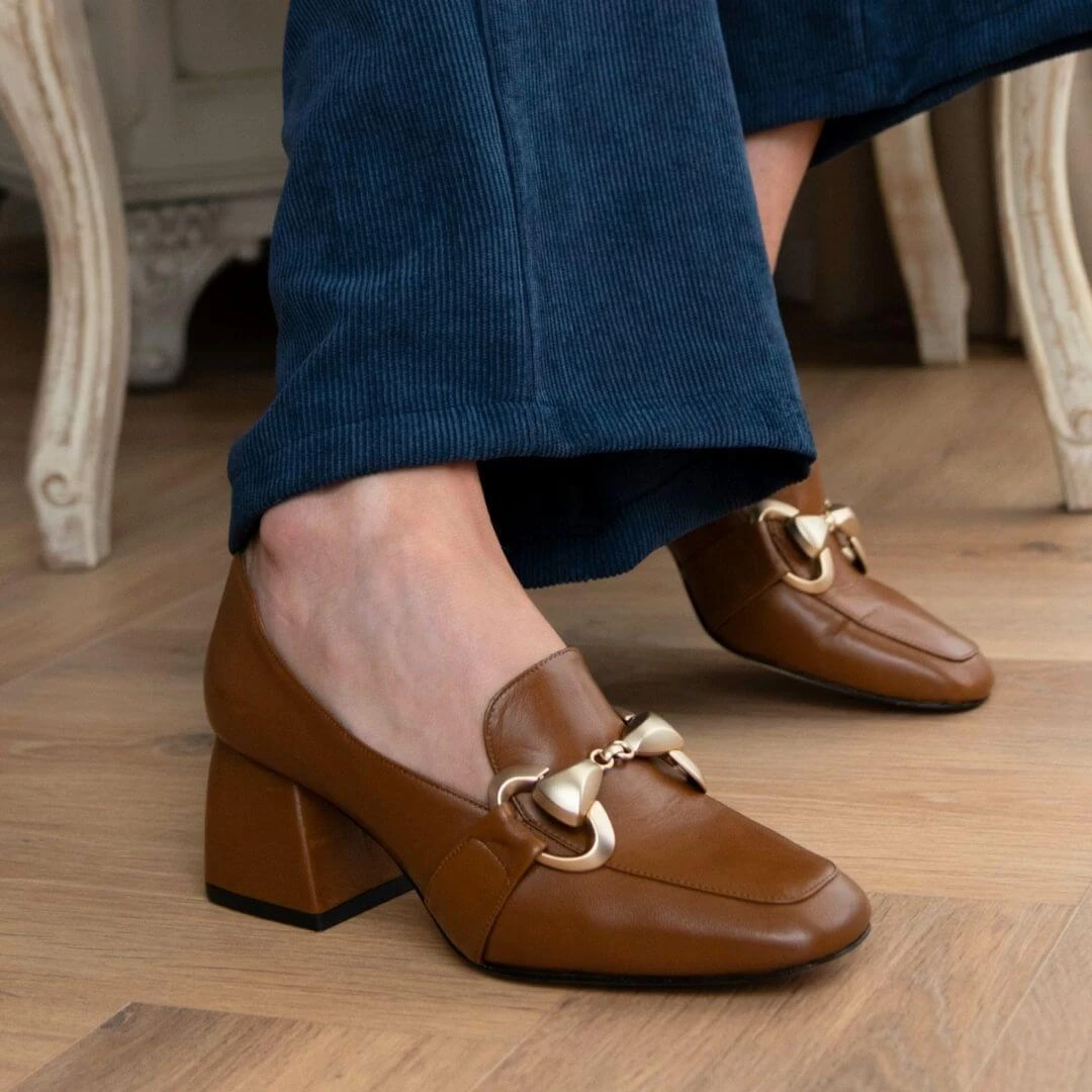 GRETA 40 – Miel Regina Romero Zapato Zapatilla Tacon Bajo Para Dama En Piel