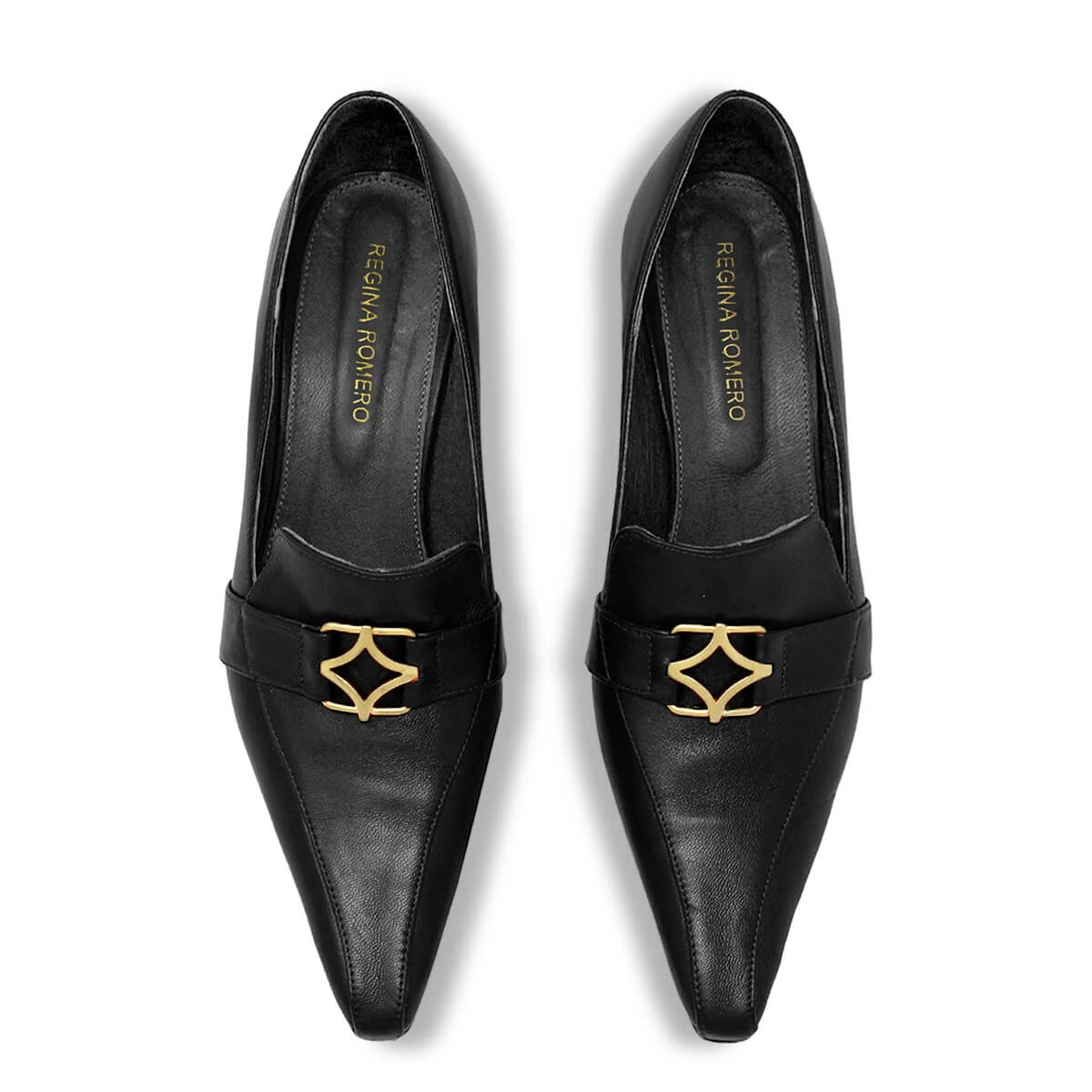 LONDON 60 – Negro Regina Romero Zapato Zapatilla Tacon Bajo Para Dama En Piel