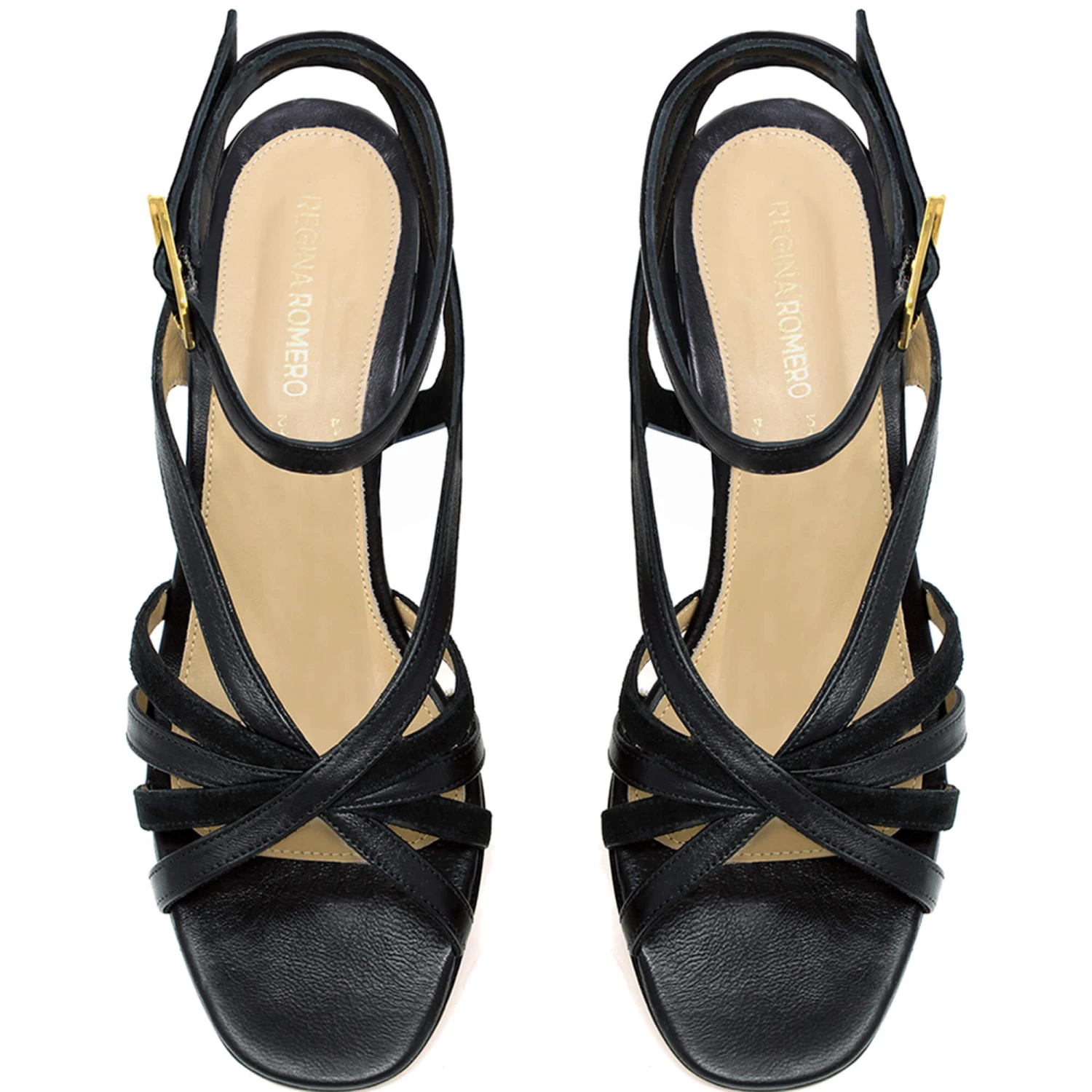 MIRA 60 – Negro Regina Romero Zapato Sandalia Zapatilla Tacon Bajo Para Dama En Piel