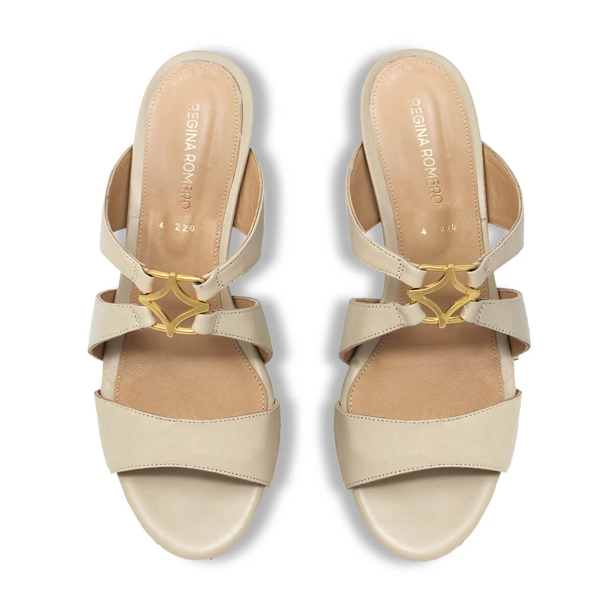 VINCI 50 – Beige Regina Romero Zapato Sandalia Zapatilla Tacon Bajo Para Dama En Piel